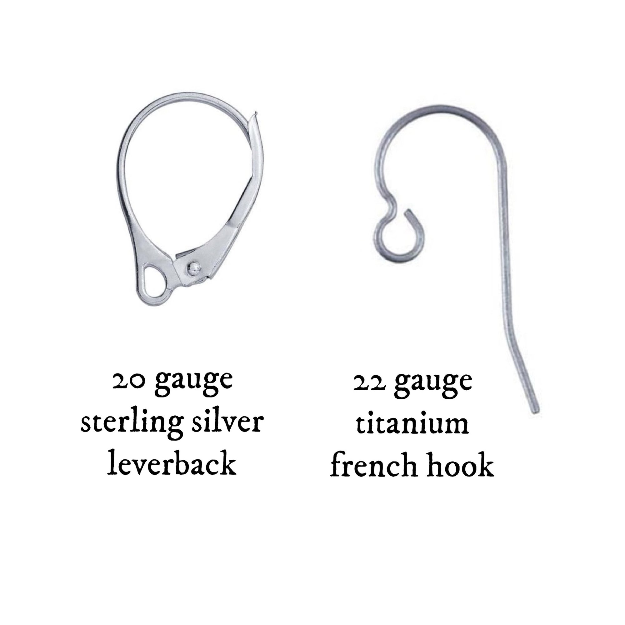 Hypoallergenic, pure titanium french hooks (22 gauge) are also available upon request. Please mention it in the notes section during checkout.