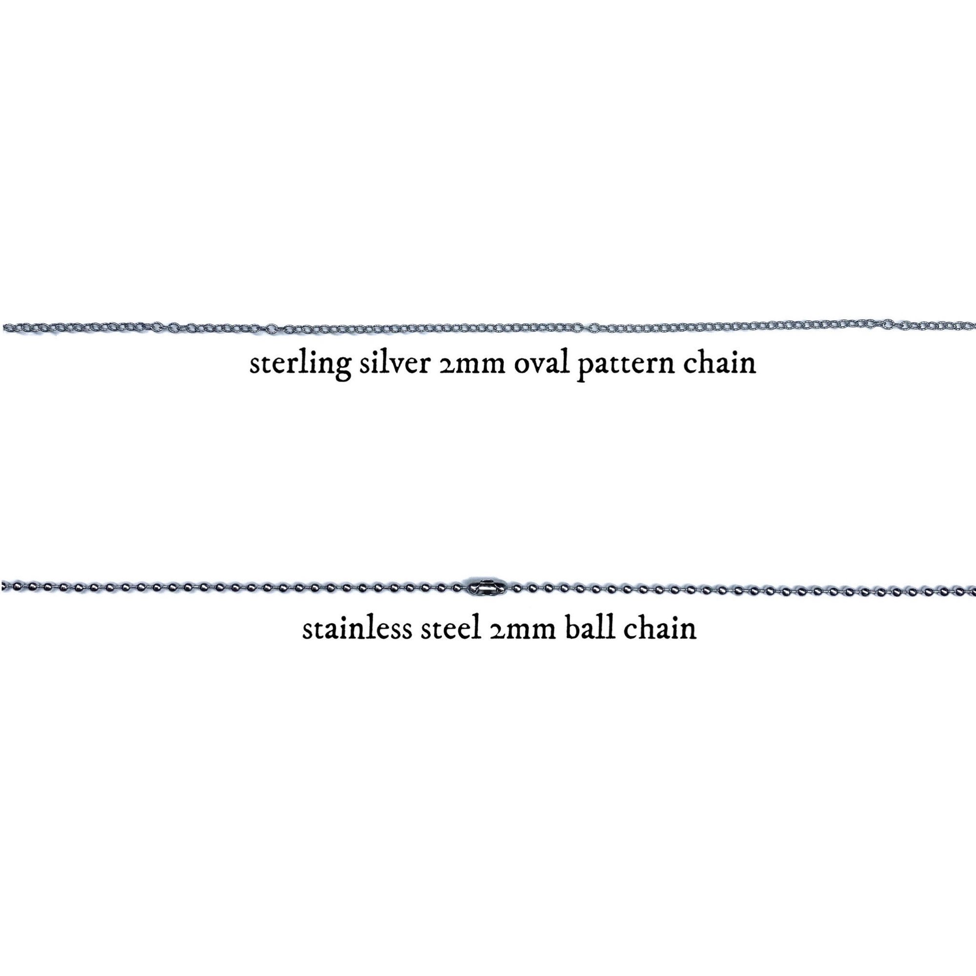 This pendant is also available in sterling silver suspended from a 2mm nickel-free stainless steel ball chain. Please note chain length up to 30" in checkout.
